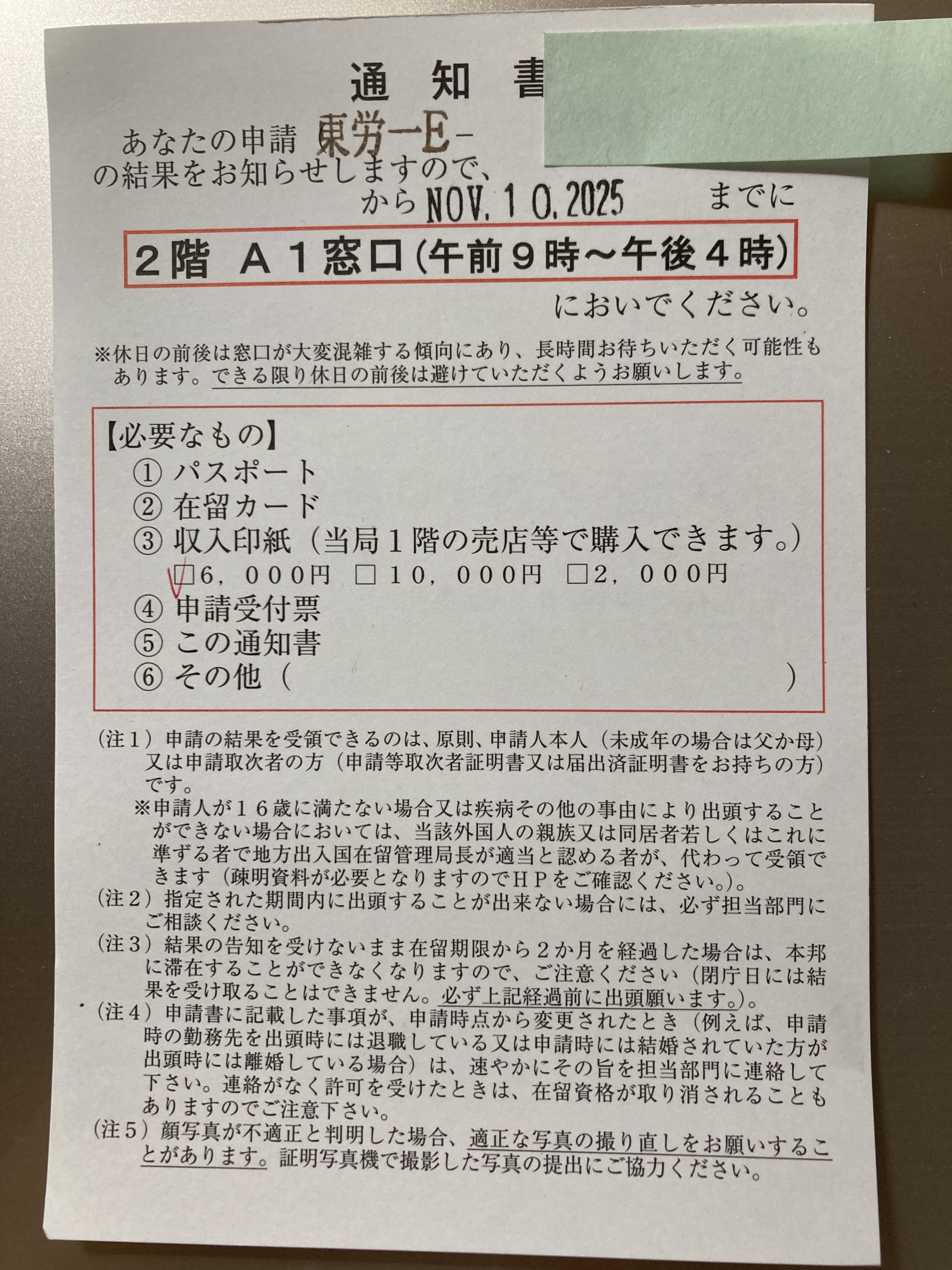 東京入管より審査完了(許可)を知らせるハガキが届きました🌿